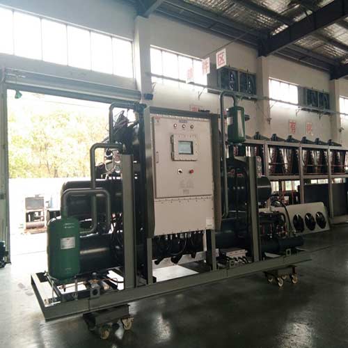 超低溫制冷機組控溫范圍在-40度至-120度,-40度至-90度時可采用二元復(fù)疊式制冷,-90度至-120度可采用三元復(fù)疊式制冷。